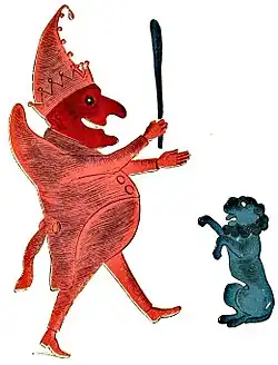 This figure and broom will give a yellow spectre, cloak and hat red, and moon white.