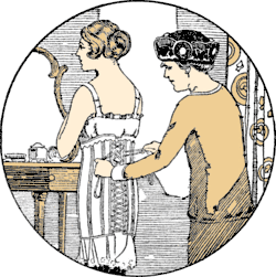 When delivering the corset, the Corsetiere teaches you how to lace it properly. Explaining the lacing adjustments, she shows their importance in promoting health, giving the body correct poise and enhancing the best figure lines.