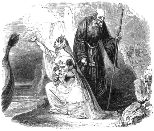 Both young and old in the neighbourhood wept at the news of this cursed letter; and on the fourth day Constance, with a deadly pale face, went toward the vessel: and kneeling down upon the strand, she said, 'Lord! ever welcome be thy decree;' and, she added, 'he that shielded me from blame while I was amongst you, can preserve me from harm in the wide sea. He is now as strong as he ever was: in Him I put my trust; He will be my sail and my load-star on the perilous deep.'