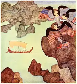 'Too sweet, indeed,' answered Eurylochus, shaking his head. 'Yet it was not so sweet as the song of the Sirens, those birdlike damsels who wanted to tempt us on the rocks, so that our vessel might be wrecked, and our bones left whitening along the shore.'