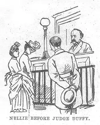 We entered the courtroom. It was the Essex Market Police Courtroom. At last the question of my sanity or insanity was to.be decided. I nudge Daffy sat behind the high desk, wearing a look which seemed to indicate that he was dealing out the milk of human kindness by wholesale. I rather feared I would not get the fate I sought, because of the kindness I saw on every line of his face, and it was with rather a sinking heart that I followed Mrs. Stanard as she answered the summons to go up to the desk, where Tom Bockert had just given an account of the affair.