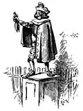Then there was Sir Walter Rosettes, a long-bodied little man in a cavalier’s cloak, with a ruff about his neck and enormous rosettes on his shoes, who stood on a pedestal at old Mrs. Peevy’s garden gate, offering an imitation tobacco-plant, free of charge, as it were, to anyone who would take the trouble of carrying it home. This bold device was intended to call attention to the fact that Mrs. Peevy kept a tobacco-shop in the front parlor of her little cottage behind the hollyhock bushes, the announcement being backed up by the spectacle of three pipes arranged in a tripod in the window, and by the words “Smokers’ Emporium” displayed in gold letters on the glass; and, by the way, Dorothy knew perfectly well who this little man was, as somebody had taken the trouble of writing his name with a lead-pencil on his pedestal just below the toes of his shoes.
