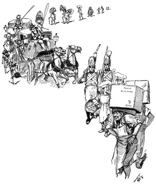 Then porters with their packages, and bakers with their buns,