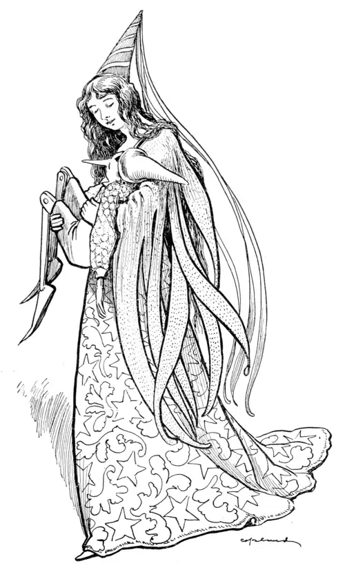 “What do you command, my gracious Fairy?” said the Falcon, lowering his beak in a bow of reverence. For you must know that the Baby with the Blue Hair was none other than a beautiful fairy, who for more than a thousand years had lived in the neighborhood of this forest.