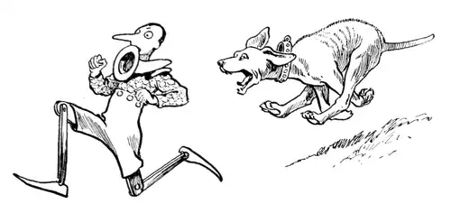 During that desperate run there was a terrible moment in which Pinocchio believed himself lost, for Aladdin, the dog, ran so very fast that he nearly caught him. The marionette felt behind him the warm breath of the ugly beast as he panted heavily. By good luck the beach was near and he saw the sea not far away.