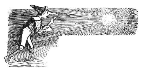 Now, my little readers, you must know that the Dogfish, being very old and suffering from asthma and palpitation of the heart, was obliged to sleep with his mouth open. Pinocchio, therefore, looking up through the throat, saw the starry heavens and the light of the moon.