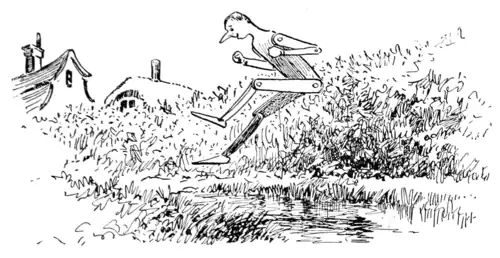 I will tell you then, children, that while poor old Geppetto was led to prison without having done any wrong, that rogue Pinocchio, being free, took to his heels and ran toward the fields in order more easily to reach his house. In his haste he jumped high mounds of earth, hedges of thorns, and ditches of water, just as rabbits and deer do when chased by hunters.
