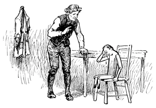 The marionette had scarcely appeased his hunger when he began to grumble and cry because he wished a new pair of feet. Geppetto, in order to punish him for his bad actions, let him cry for half a day. Then he said: “And why should I make you a new pair of feet? Perhaps you would run away again.”