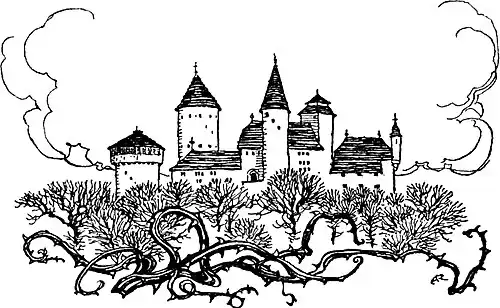 At the end of a hundred years, the son of a king who was reigning at that time, and who did not belong to the same family as the sleeping princess, was hunting in the neighbourhood, and asked what were those towers that he saw