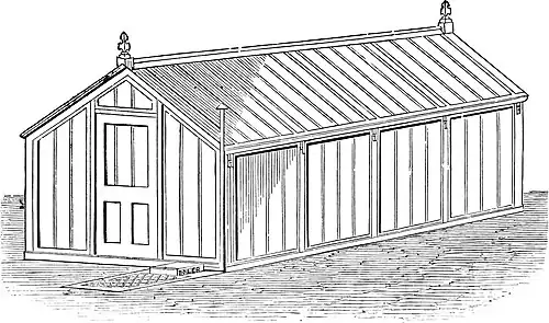 There are several kinds of portable houses now provided by enterprising manufacturers, and amongst many good ones that known as the “Paxtonian,” the invention of Sir Joseph Paxton, is, perhaps, the best. Leaving the reader to select for himself the ready-made article, we proceed to show how portable houses may be constructed by village carpenters and handy amateurs.