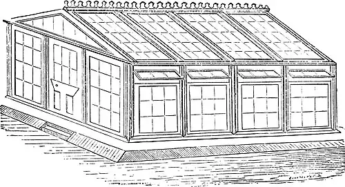 the stages and tables might be furnished. Happily, we are rich in noble plants adapted for the purpose, and that require for their preservation a winter temperature which exactly suits the human constitution, so that, by prudent selection and good management, a conservatory may be made a place of agreeable resort at every season of the year, and be especially pleasant to afford a change of scene and occupation in the winter season. It is, however, painfully common to meet with grand conservatories that are utterly unfit for their intended purpose, the work of architects and builders who were so unfortunate as to know nothing of plant growing. When we are approaching a conservatory with a bold frontage of stone pilasters and heavy cornice and recessed windows, in the style of a Grecian temple, we are fully advertised of the appearance the plants will present when we gain access to the interior. The conservatories that architects unskilled in horticulture provide for their employers usually have this distinguishing character, that no plant will thrive in them, and very few will live in them; therefore, as conservatories are costly things, it will be well for those who intend to pay for them, to take measures, in good time, to secure suitable designs, and employ competent persons to carry them into effect.