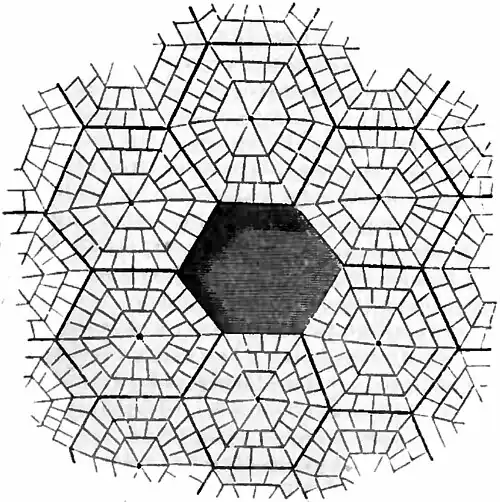 HAIL, the aqueous vapor of the atmosphere congealed in icy masses, called hailstones, and precipitated upon the earth. Hailstones vary in size and internal structure, from the homogeneous masses one eighth of an inch in diameter forming sleet, to the larger masses 3 in. in diameter, of beautiful crystalline structure, and to the still larger accretions of these masses sometimes a foot or more in diameter. The crystalline structure of most hailstones is remarkably distinct. The centre of the hail is a collection of semi-translucent granules or a spongy mass of snow and opaque ice; surrounding this nucleus is a more or less well defined radiated structure of crystals of ice; a large quantity of air is always enclosed within the interstices of the hailstone. Occasionally the stones are composed of concentric rings of ice and snow; when they consist of clear ice without the snowy nucleus, there is almost invariably found in the centre, in place of the nucleus, a cavity filled with condensed air; from experiments made in 1871 it has been shown that this bubble of enclosed air is subjected to a pressure of many atmospheres. Small bits of dust, leaves, and other foreign particles are occasionally found in the interior of the mass of a hailstone, and crystals of sulphur as well as ashes are particularly observed when the hail storm occurs in a volcanic region.