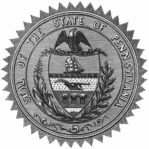PENNSYLVANIA, one of the thirteen original states of the American Union, included in the middle states, and now the second in wealth and population. As it was the seventh in geographical order of the original thirteen, it came to be called the “keystone state.” Pennsylvania was somewhat indefinitely bounded as originally granted by charter; but in the final adjustment of colonial limits it was made a nearly perfect parallelogram W. of the Delaware river, a small addition being made at its point of contact with Lake Erie to give it access to lake navigation and a good harbor. The state lies between lat. 39° 43' and 42°, except that the small portion bordering on Lake Erie extends N. to 42° 15', and lon. 74° 40' and 80° 36'. It is bounded N. by Lake Erie and New York; E. by New York and New Jersey, from which it is separated by the Delaware river; S. by Delaware, Maryland, and West Virginia; and W. by West Virginia and Ohio. The extreme length E. and W. is 315 m., average 270 m.; general width, 158 m.; area, about 43,000 sq. m.