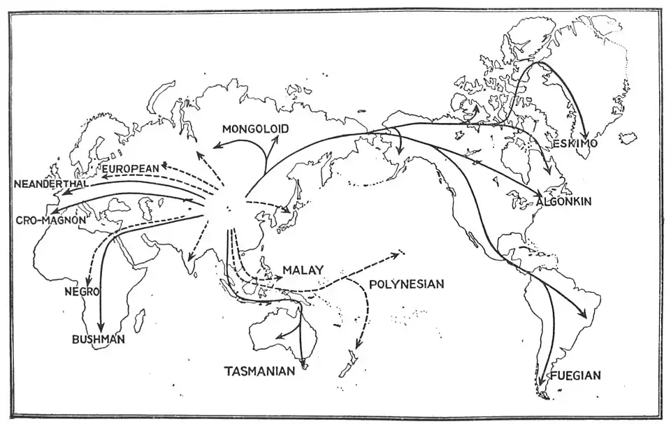 Fig. 99. General Lines of Dispersion for Mankind. The broken lines represent the more recent movements.