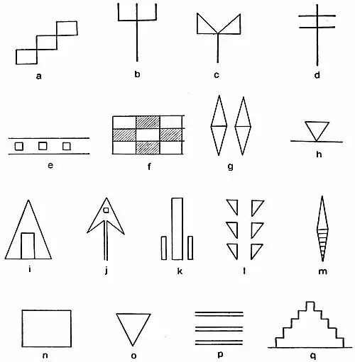In conclusion, we may recall our initial question: Is the pattern name at its inception symbolic, or even representative? We can safely say that in most cases it was certainly neither. The suggestion is that symbolic art is primarily realistic, and that many true symbols may be explained as derived from pictures; but true symbols are relatively rare in the geometric designs we have studied and we have consequently no good reason for assuming that many of these as a class were once realistic. In short, the problem is an historical one. We have seen that geometric art is sometimes under pressure from realistic art and perhaps is always so. Hence, the feeling that its designs should be representative may universally arise and so account for all these design interpretations as secondary phenomena.
