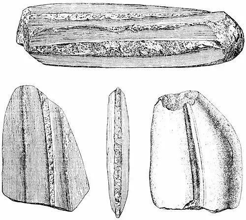 Fig. 56. Pieces of Nephrite Showing the Method of Cutting and Breaking. Smith, H. I., 1899. I