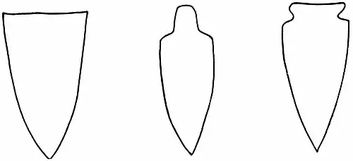 Our next task is to enumerate the most distinctive types of stone artifacts and their respective distributions. The most universal is the arrow-head, which, though of many varieties, tends to take the generalized triangular form. The notched head is found in both continents, but is strikingly absent from Eskimo collections. By paying minute regard to size, secondary form, and materials, it has been possible to draw some distinctions between the arrow-heads from different parts of the two continents, but such study has not advanced to a point where a summary can be made.[7] The fact is that the difficulties of observing consistent distinctions are so great as to be discouraging. Nor do we find any great divergence from the arrow-heads of the Old World, for somewhat similar notched forms are common in Neolithic deposits. On the other hand, the fact that they do not occur in Paleolithic culture may have a significant bearing upon the history of our continent.