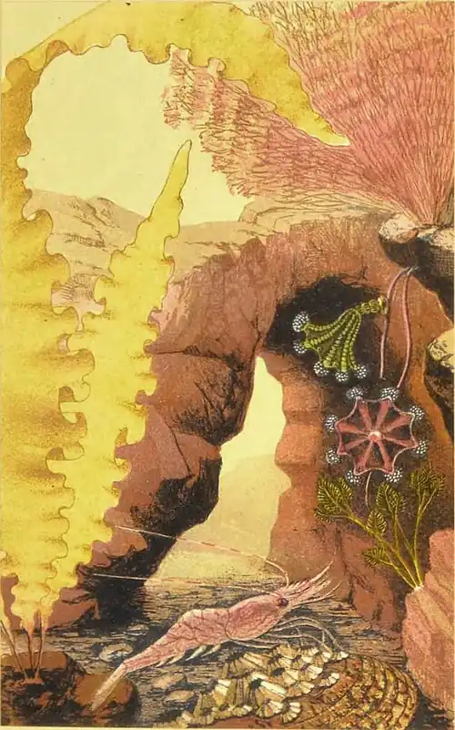 In a brief interval of gentleness, however, I found an animal which had long been an object of desire to me, a normal form of the genus Lucernaria. The small, aberrant, vase-like species, L. cyathiformis, I had taken already; but I wished to see the more elegant sorts, which resemble in figure the trumpet-shaped flower of a Convolvulus, representations of which by the pencil of Mrs. Johnston I had been in the habit of admiring, in her husband's admirable "History of British Zoophytes."