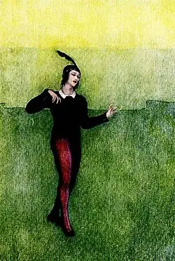Nijinsky's Harlequin is, of course, an unforgettable figure: not at all the blustering, magnificent Harlequin of Italian comedy, but a sly fellow, slickly insinuating, naughtily intimate. He is always whispering subtle secrets to Columbine, and is saved from viciousness only by his