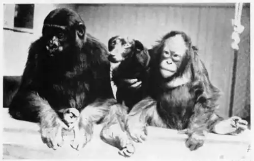 The Orang baby is big-headed, innocent-eyed and gentle in manner. They crave affection and suffer without it. The more attention and petting they receive, the better they thrive. Love is the eternal supply needed to level all their sorrows as well as ours. Orangs like human beings. They cling to those they love and are morose and melancholy when away from the object of their affections.