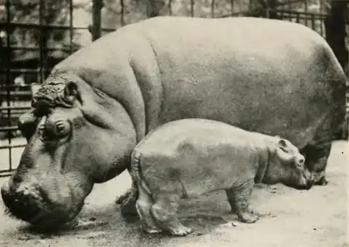 The Hippopotamus is herbivorous. He lives a great part of the time in water but is an air breathing mammal. The mothers have but one baby at a time and suckle it as a cow does her calf.