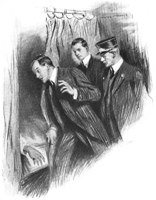 He looked up and down the aisle to assure himself that no one had entered the car during his examination; then he carefully drew the curtains together again, and hurried to the forward end of the car where he had left the porter.