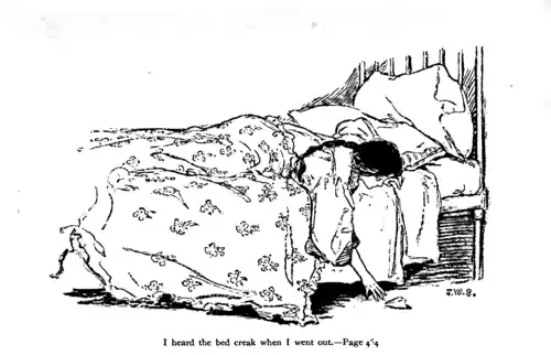 I took her up a cake after the reading that evening, and she had Edward's picture stuck on the foot-board, and I think she had been crying. I told her if it was the jelly she minded not to care, for the cream was a little sour, anyway, but she only scowled at me and pushed the cake away, which broke the frosting. It fell on the floor and she pretended not to notice it, but I heard the bed creak when I went out, and I am quite sure she got it.