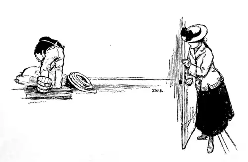 Mrs. Newcomb's bath-tub burst in the night, and right after breakfast they found the water dripping into the library, and Mrs. Newcomb asked Eleanor to run quick for the plumber, and they would mop till he came. And Eleanor ran like a deer to where Mrs. Newcomb described the shop and burst into it and called out to a man in dirty overalls that was mixing a heap of putty in the corner,