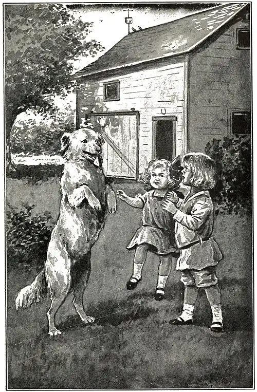Sam opened the box stall for them, and out bounced the big white dog, barking in delight, and almost knocking down the twins, so glad was he to see them.