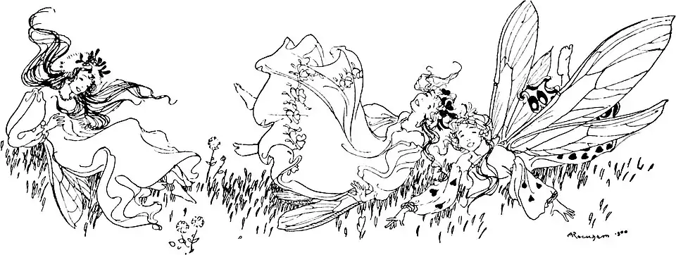 The fairies were delighted. They joined hands, and danced round and round in a circle, calling at the top of their voices, “A bit of a chit of a pink girl!”