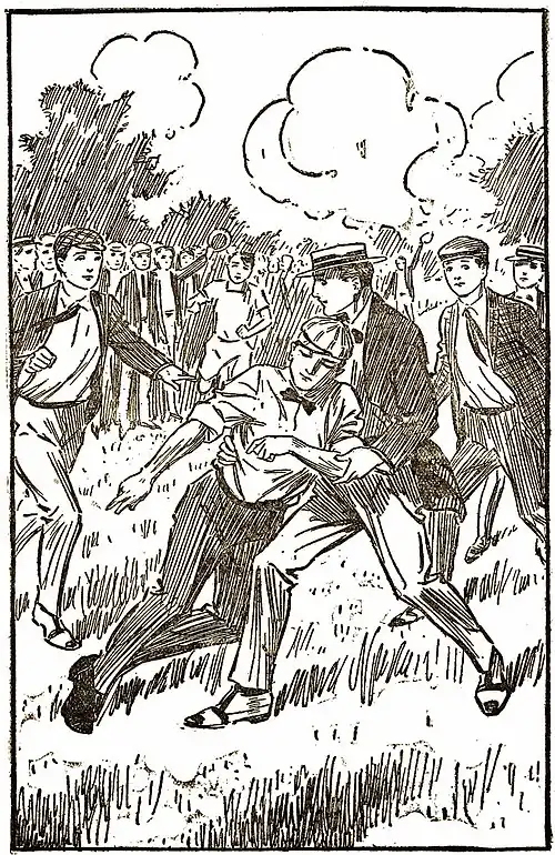 "Stop!" sharply shouted Ritchie after them. "I accuse nobody, but I want to say right here and now, and I want everybody to hear me, that I'm going to ferret out the low sneak who put those brads in Bob Upton's shoes. When I do, he leaves this school or I do, and one of us will have reason to remember the drubbing of his life."