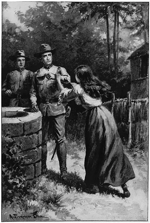 As soon as the danger was over, Ben returned to the wood, and had two men carry the wounded man back to the cottage, where he was left in charge of his wife and his niece. Through Gilbert it was learned that the wife had also remonstrated against using the poison, so it was fair to suppose that the aunt would protect her niece to a certain degree. "But she'll have a hard time of it for doing us a service, I'm afraid," said the young Southerner, as he and Ben resumed the march.