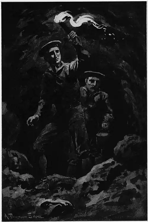 "Have a care now, lad," whispered Leroy, as they reached a narrow passage, which turned first to the left and then upward.