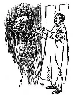 The day had been warm and sunny; and, in the cool of the evening, the whole family went out to drive. They did not return home till nine o'clock, when they had a light supper. The conversation in no way turned upon ghosts, so there were not even those primary conditions of receptive expectations which so often precede the presentation of psychical phenomena. The subjects discussed, as I have since learned from Mr. Otis, were merely such as form the ordinary conversation of cultured Americans of the better class, such as the immense superiority of Miss Fanny Devonport over Sarah Bernhardt as an actress; the difficulty of obtaining green corn, buckwheat cakes, and hominy, even in the best English houses; the importance of Boston in the development of the world-soul; the advantages of the baggage-check system in railway travelling; and the sweetness of the New York accent as compared to the London drawl. No mention at all was made of the supernatural, nor was Sir Simon de Canterville alluded to in any way. At eleven o'clock the family retired, and by half-past all the lights were out. Some time after, Mr. Otis was awakened by a curious noise in the corridor, outside his room. It sounded like the clank of metal, and seemed to be coming nearer every moment. He got up at once, struck a match, and looked at the time. It was exactly one o'clock. He was quite calm, and felt his pulse, which was not at all feverish. The strange noise still continued, and with it he heard distinctly the sound of footsteps. He put on his slippers, took a small oblong phial out of his dressing-case, and opened the door. Right in front of him he saw, in the wan moonlight, an old man of terrible aspect. His eyes were as red burning coals; long grey hair fell over his shoulders in matted coils; his garments, which were of antique cut, were soiled and ragged, and from his wrists and ankles hung heavy manacles and rusty gyves.