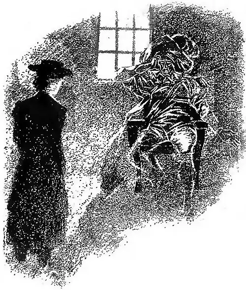 FEW days after this, Virginia and her curly-haired cavalier went out riding on Brockley meadows, where she tore her habit so badly in getting through a hedge that, on their return home, she made up her mind to go up by the back staircase so as not to be seen. As she was running past the Tapestry Chamber, the door of which happened to be open, she fancied she saw some one inside, and thinking it was her mother's maid, who sometimes used to bring her work there, looked in to ask her to mend her habit. To her immense surprise, however, it was the Canterville Ghost himself! He was sitting by the window, watching the ruined gold of the yellowing trees fly through the air, and the red leaves dancing madly down the long avenue. His head was leaning on his hand, and his whole attitude was one of extreme depression. Indeed, so forlorn, and so much out of repair did he look, that little Virginia, whose first idea had been to run away and lock herself in her room, was filled with pity, and determined to try and comfort him. So light was her footfall, and so deep his melancholy, that he was not aware of her presence till she spoke to him.
