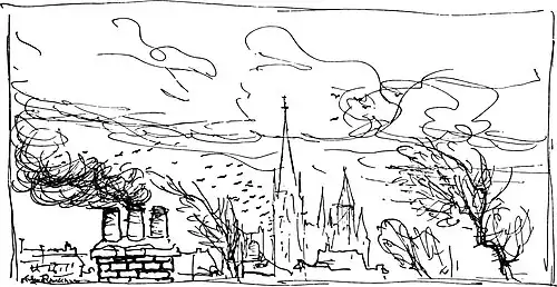 their thread-spun castles in the air, or climb up sailor-like in quick alarm, or drop upon the ground and ply a score of nimble legs to save one life! High up in the steeple of an old church, far above the light and murmur of the town and far below the flying clouds that shadow it, is the wild and dreary place at night: and high up in the steeple of an old church, dwelt the Chimes I tell of.