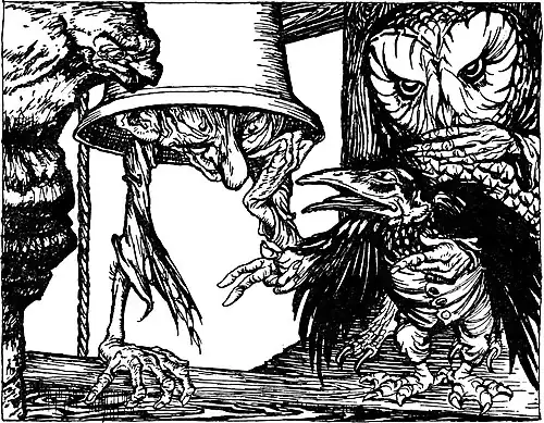 Since his discovery of the contents of the basket, Trotty had been standing looking at her—and had been speaking too—in an abstracted manner, which showed that though she was the object of his thoughts and eyes, to the exclusion even of tripe, he neither saw nor thought about her as she was at that moment, but had before him some imaginary rough sketch or drama of her future life. Roused, now, by her cheerful summons, he shook off a melancholy shake of the head which was just coming upon him, and trotted to her side. As he was stooping to sit down, the Chimes rang.
