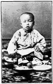 The names given to boys are quite as humiliating or as elevating as those given to girls. He may be Number One, Two or Three, Pig, Dog or Flea, or he may be like Wu T'ing Fang a "Fragrant Palace," or like Li Hung Chang, an "Illustrious Bird" or "Learned Treatise."