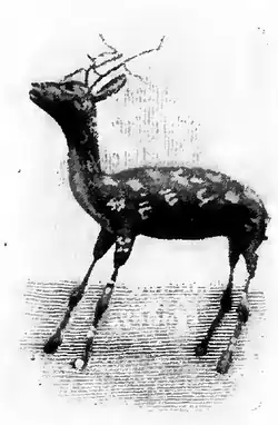 He had gone beyond our instructions. He had brought us a large collection of camels made of cloth the color of the camel's skin, with little bunches of hair on the head, neck, hump and the joints of the legs, similar to those on the camel when it is shedding its coat in the springtime. He had elephants made of a grayish kind of cloth on which were harnesses similar to those supposed to be necessary for those animals. He had bears with bits of hair on neck and tail and a leading string in the nose; horses painted with spots of white and red, matched only by the most remarkable animals in a circus; monkeys with black beads for eyes, and long tails; lions, tigers, and leopards, with large, savage, black, glass eyes, with manes or tails suited to each, and properly crooked by a wire extending to the tip. And finally he laid the bogi-boo, a nondescript with a head on each end much like the head of a lion or tiger. When not used as a plaything, this served the purpose of a pillow.