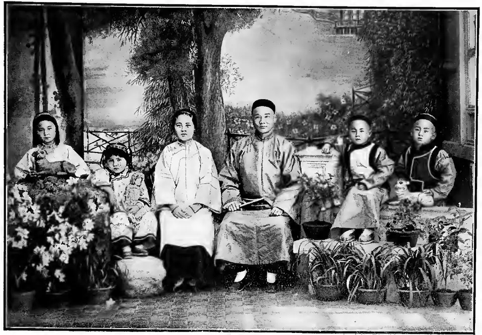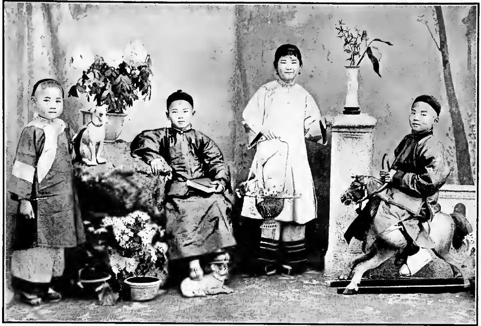women with babies in their arms while grandmother amused them with rattles, and father lay near by smoking an opium pipe.