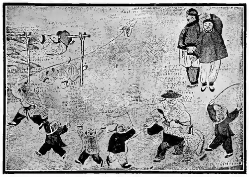 I was walking along the street one day near the mouth of Filial Piety Lane where a large company of men and children were watching a juggler, and from the trick I thought it worth while to invite him in for the amusement of the children. He promised to come about four o'clock, which he did.