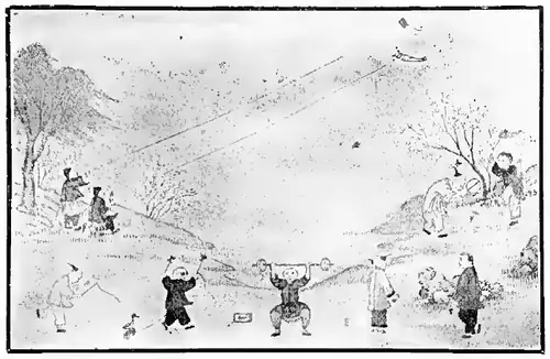 In their helplessness the magpies came to their rescue. At early morn on the seventh day of the seventh moon, these beautiful birds gathered in great flocks about the home of the maiden, and hovering wing to wing above the river, made a bridge across which her dainty feet might carry her in safety. But when the time for separation came, the two wept bitterly, and their tears falling in copious showers are the cause of the heavy rains which fall at that season of the year.