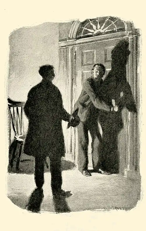 As it was arranged, so it fell out. At nine, I lifted and dropped the knocker on the Major's front door. It opened so promptly that I was somewhat taken by surprise, but in a moment the hand of my host was on my arm, and he pulled me inside unceremoniously.