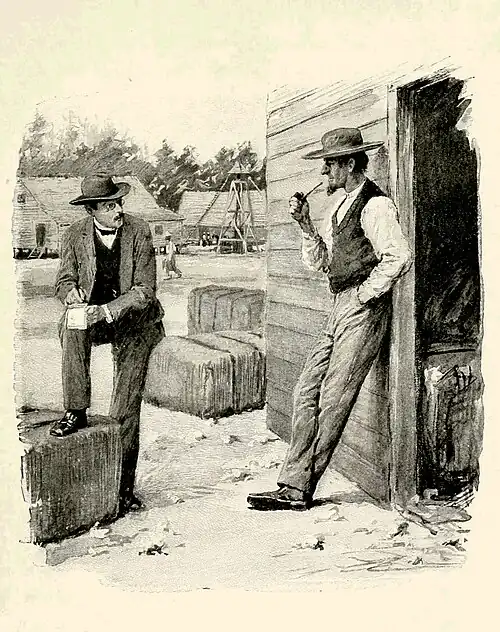 "I 'speck you got de idee dat I better be seein' 'bout supper, stidder settin' up here lookin' biggity. But 'tain't no use, suh. Marse Tumlin and Miss Vallie never is ter come home dis day less'n dey bring Marse Paul wid um. I done hear um sesso. An' I know mighty well, deyer gwine ter come back late, bekaze Paul Conant's one er dem kinder folks what go twel dey can't go, an' when dey git down dey make motions like dey gwine. Dey puts me in mind uv a lizard's tail, suh. Knock it off, an' it'll hop 'bout an' work an' wiggle plum twel de sun go down."