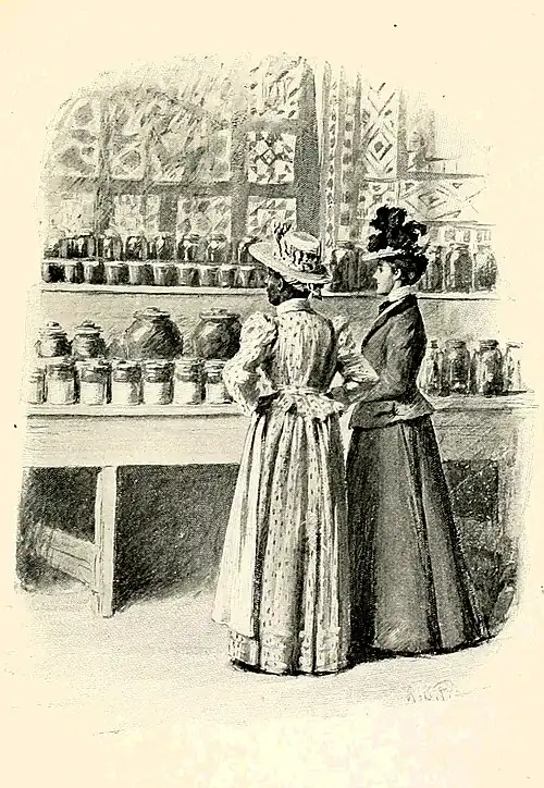 "You toughed it out mighty well, suh," remarked Aunt Minervy Ann, after some talk about the various attractions of the fair. "Up dar in Atlanty deze kinder doin's would be laughed at, I 'speck, but hit's de bes' we-all kin do. Me an' Miss Vallie had some truck dar, speshually dat ar grape jelly on de right han' side. Ef dat jelly don't git de blue ribbon er sump'n better, hit'll be bakaze dem ar jedgment men ain't got no sense—I don't keer who dey is. Ain't you see dat ar quilt hangin' up dar wid a pattern in it like a well-whorl, only de middle er de whorl was shape like de mornin' star? Dat ar quilt is older dan what you is, suh—lots older. Me an' Mistiss made dat quilt long 'fo' Miss Vallie wuz born, an' dish yer baby'll tell you she ain't no chicken. Ef dey's any purtier quilt on dat hill dey had it hid ter-day; dey ain't brung it out whar folks kin look at it. I dunno much, but I knows dat much."