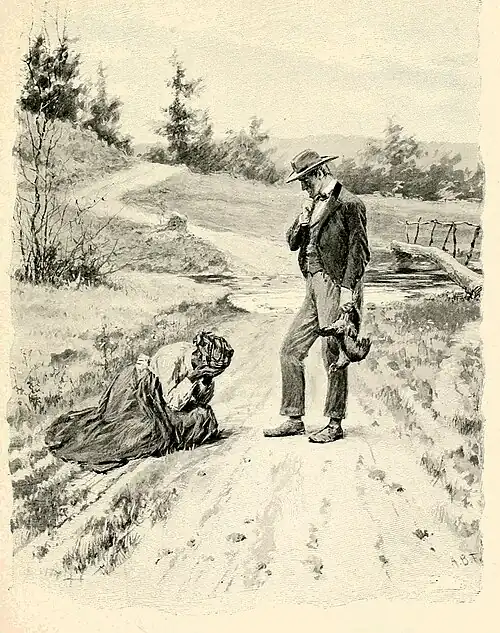 "Marse Tumlin say, 'Whar you gwine, Minervy Ann? I 'low, 'I'm gwine back home—dat's whar I'm gwine!' He say, 'Pick up yo' bundle.' Wid dat I turn 'roun' on him an' 'low, 'I ain't gwine ter do it! Ef it hadn't er been fer dat ar muslin dress in dar, what Miss Vallie make over an' gi' me, I'd been at home right dis minute.'