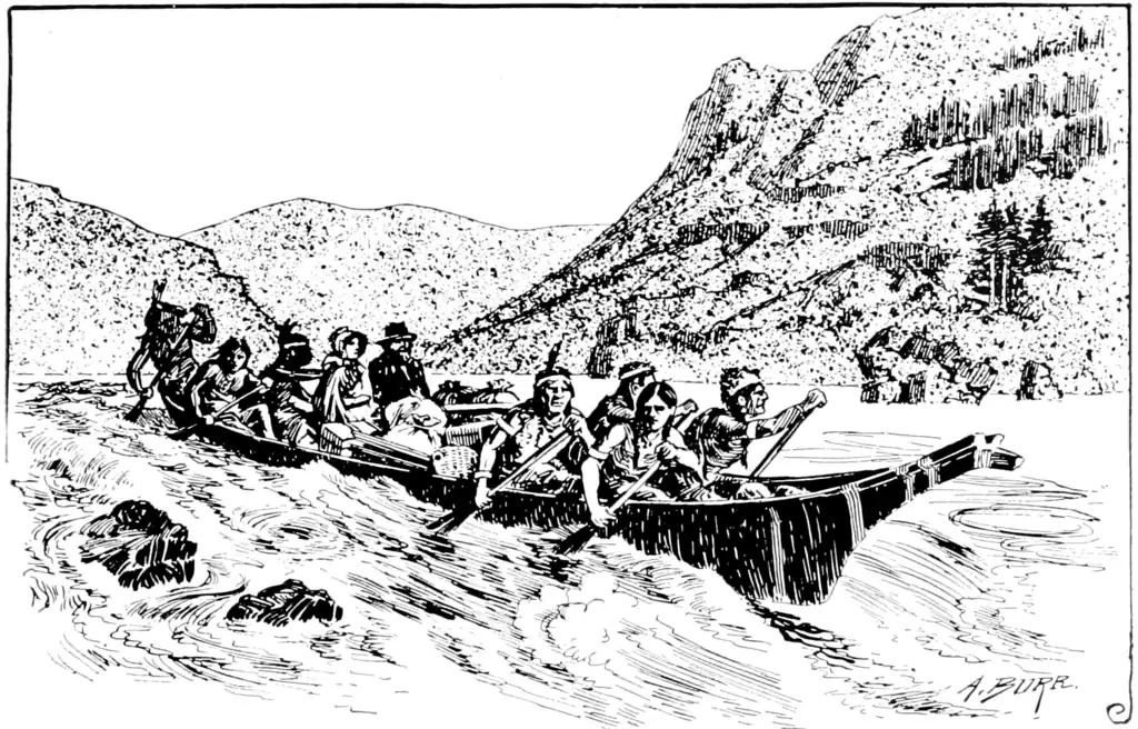Continuing her story of the journey in the boat Mrs. Whitman says, "We made fine progress this morning until nine o'clock, when we were met with a head wind and obliged to make shore. We met the crew last night with the Western express. This express goes from and returns to Vancouver twice a year.