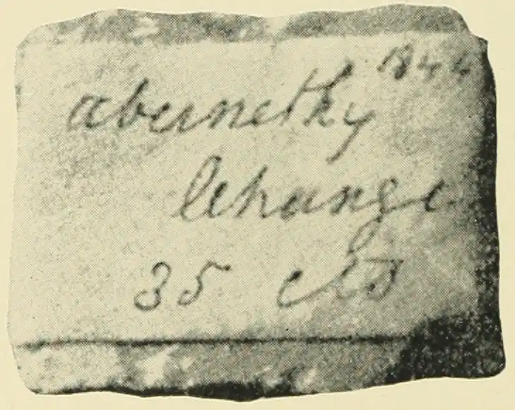 Fractional currency was very scarce, and how to do business and effect exchange without it was a problem. The time was fast coming when sea shells and the highly colored beads[7] used by the Indians and the fur traders would have to give way to the coinage of metals.[8] The first Governor of Oregon Territory, George Abernethy, had a store at Oregon City. He lacked fractional currency, and in order to meet the situation, he induced the Indians to gather flat, rectangular pieces of flint rock from the place where they made their arrow points. He glued a piece of tough paper around each stone, and wrote thereon his name, the year, and the amount which it would be good for at his store. When a customer carried a number of them he certainly had a "pocket full of rocks," and this is said to be the origin of that term.[9]