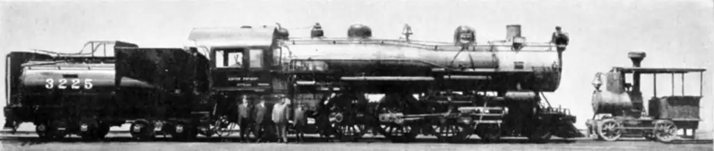 Size of cylinders....................................................................................................................................................................................................................................................25 inches diameter Size of drive wheels....................................................................................................................................................................................................................................................77 inches diameter Weight of engine and tender....................................................................................................................................................................................................................................................414,240 pounds Will haul on a straight, level track at a speed of ten miles per hour....................................................................................................................................................................................................................................................10,442 tons The modern locomotive weighs 42.7 times as much as the "Oregon Pony" and is 47.7 times as powerful.