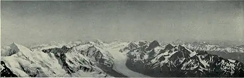 ![]() THE TASMAN GLACIER AND THE MALTE BRUN RANGE FROM THE SUMMIT OF MOUNT COOK. |